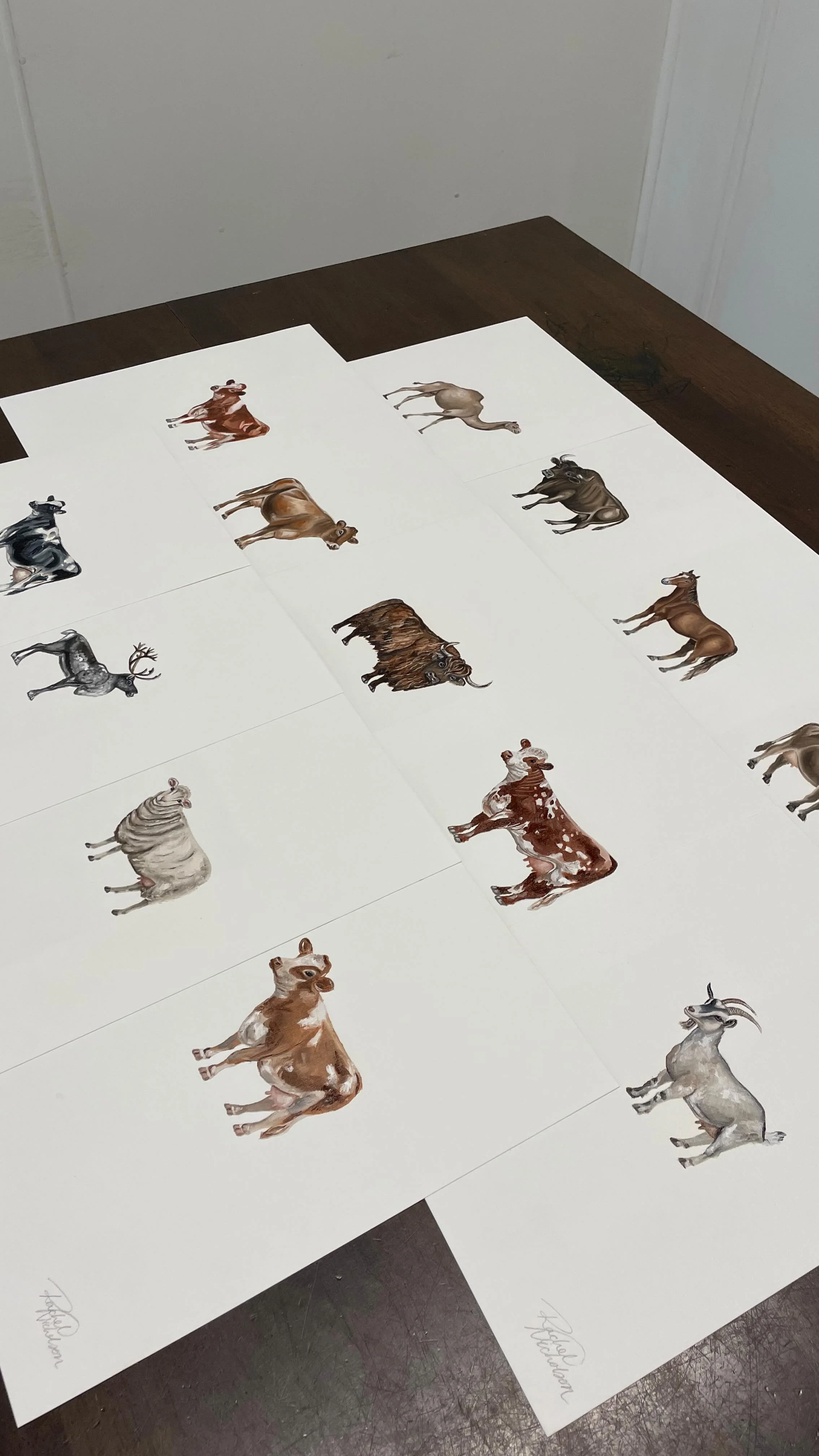 My offerings include original oil paintings, line drawings of cows, greeting cards and more exciting products that will be released soon.